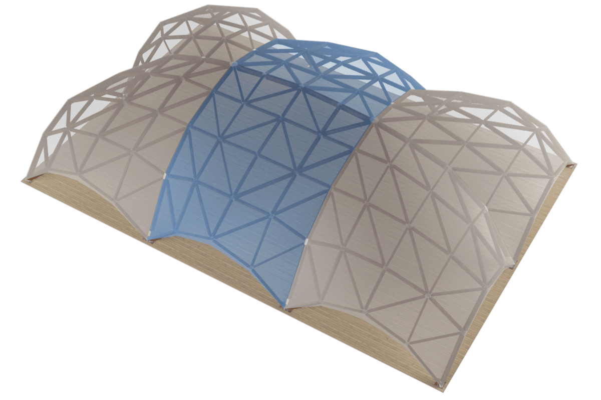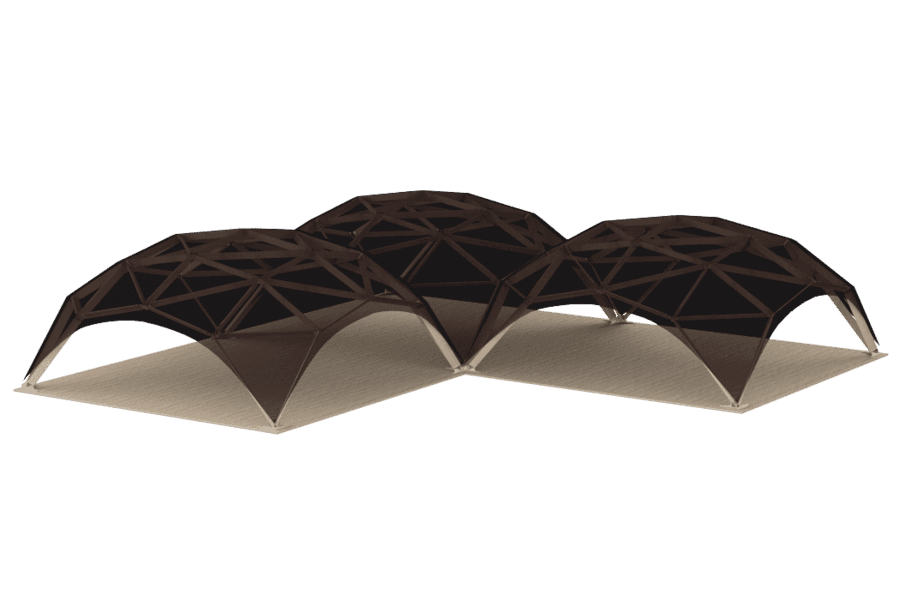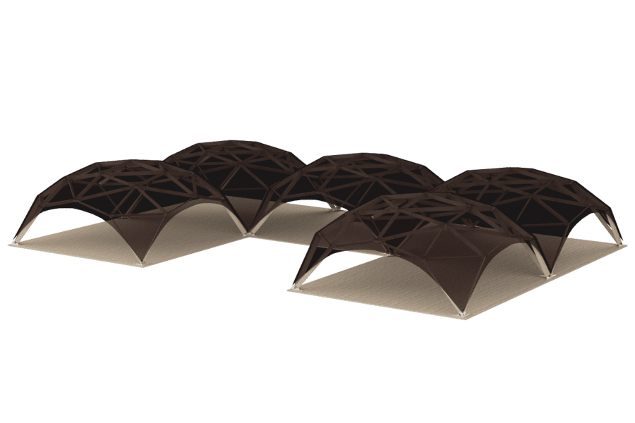 Puiset teltat voidaan yhdistää toisiinsa minkä tahansa muotoisiksi hahmoiksi. Samalla quad dome -teltat voivat olla erikokoisia ja ne voidaan myös liittää toisiinsa. Vain rakenteet, joilla on sama kaareinen jänneväli, voidaan yhdistää toisiinsa: 6×6 ja 6×6, 8×8 8×8 ja muita kokoja. Riippuvien rakenteiden kokonaispinta-ala voi olla useita satoja neliömetriä. Samanaikaisesti ei ole toivottavaa järjestää rakenteita neliön muotoon, koska voi muodostua paikka kosteuden kerääntymiselle.